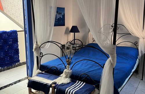In private residence secure 24h24h, houseriad of standing of 120m2 + 15 m2 of privative terrace, understanding Moroccan living room with tv + satellite, patio, 3 rooms all equipped with sdb, patio, cooks equipped, washing machine, microwaves and oven with gas. Comfortable and air conditioned. Possibility to have a housekeeper and cook. Possibility 2 extra people if they are children.